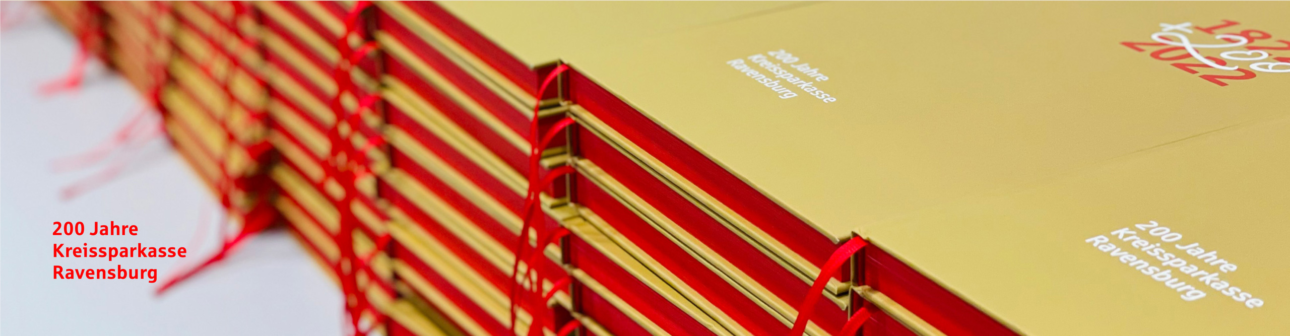 Unsere Aufgabe war es, für diese herausragende Leistung das Konzept für die Jubiläums-Chronik zu entwickeln, diese zu gestalten und den Produktionsprozess bin hin zum Verpackungsdesign zu begleiten. Das Ergebnis dieses Projektes ist ein hochwertiges, dem Anlass gerecht werdendes Buch – rund 180 Seiten stark, mit fünf spannenden Kapiteln. Neben einer wahrlich zukunftsorientierten Einleitung und den dankenden Schlussworten von Heinz Pumpmeier, dem Vorsitzenden des Vorstands, und von Landrat Harald Sievers findet sich in jedem Kapitel eine chronologisch mitlaufende Zeitachse. Die Kapitelseiten sind illustrativ umgesetzt und wecken mittels kurzer Teaser-Texte zusätzlich die Neugierde. Der Buchschnitt ist sparkassentypisch in Rot gehalten, Prägungen auf Titel, Rücktitel und Buchrücken runden die hohe Qualität des Jubiläumswerks ab.