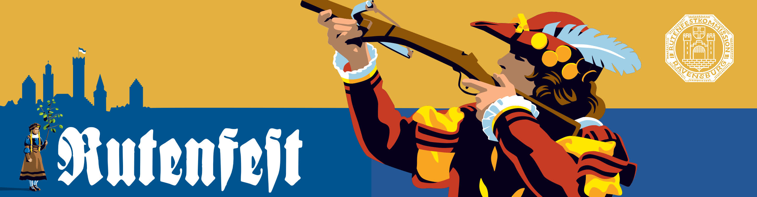 Auch wir sind wie immer voller Vorfreude und mit viel Kreativität dabei: Rainer Weishaupt vom d-werk gestaltet seit 2006 das jährlich wechselnde Leitmotiv. Dargestellt wird immer eine Besonderheit im jeweiligen Rutenjahr – visualisiert in einem ganz besonderen Stil. Aktuell zeigt das Motiv einen Armbrustschützen der „Landsknechte“, die heuer ihr 125-jähriges Bestehen feiern.