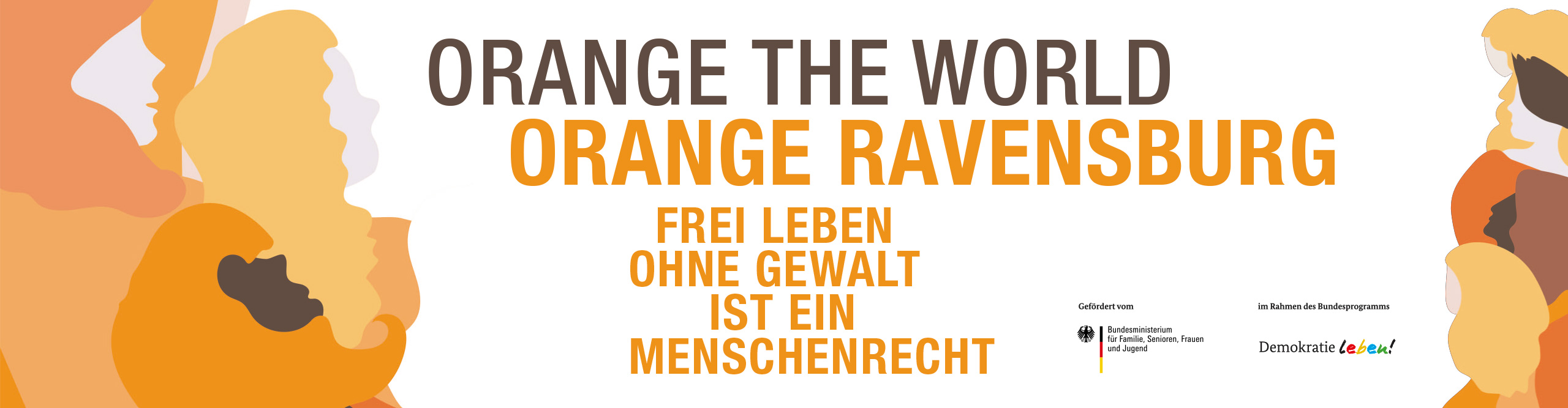 Dafür leuchten vom 25. November bis zum 10. Dezember das Ravensburger Frauentor, die Bauhütte und das Konzerthaus in Orange. Bereits vor dem Frauentorbogen führen auf den Boden gesprühte Begriffe zum Thema hin. Im Bogen werden Informationen über ein Banner und über Mitnahme-Folder transportiert. Die Aktion ist initiiert vom Soroptimist International Club Ravensburg/Weingarten, dem Verein „Frauen und Kinder in Not“ sowie der städtischen Gleichstellungsbeauftragten.