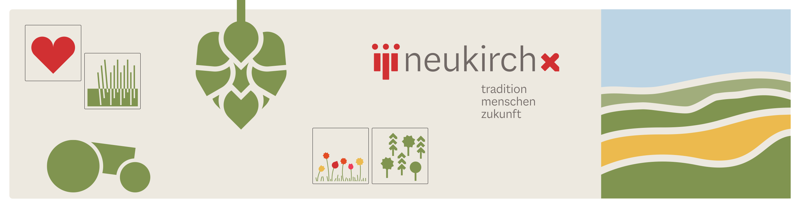 Mehrere Monate wurde intensiv an der neuen Wortbildmarke und dem Markenbild der Gemeinde Neukirch gearbeitet. Das alte Logo war deutlich in die Jahre gekommen. Es visualisierte nicht mehr das, was die Gemeinde ausmacht und bot zu wenig Flexibilität und Vielseitigkeit in der täglichen Anwendung. Im engen Austausch mit Gemeinderat und Verwaltung haben wir ein strategisches Markenkonzept erstellt und die Wortbildmarke entwickelt.